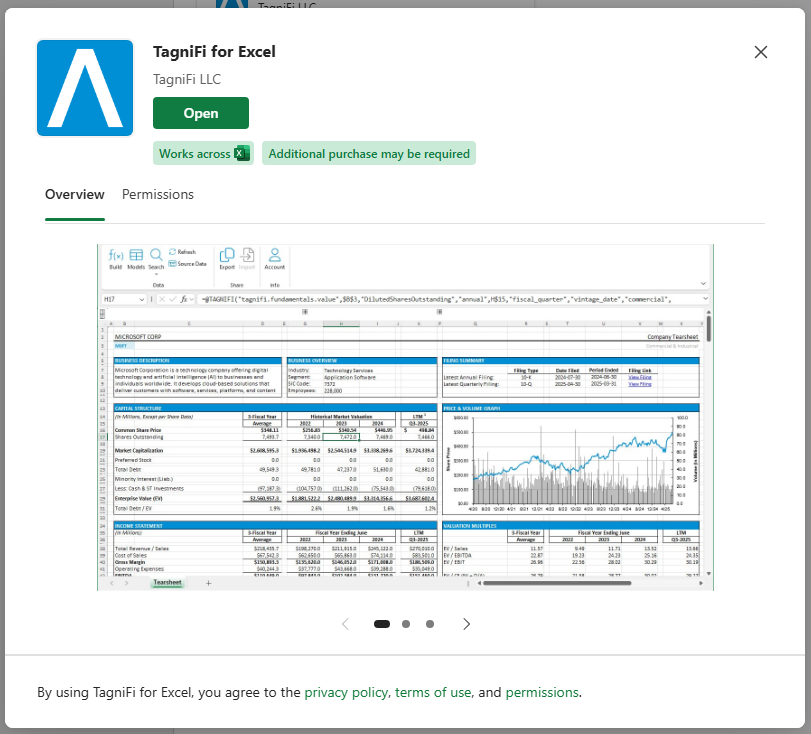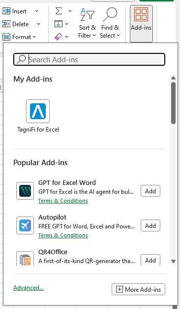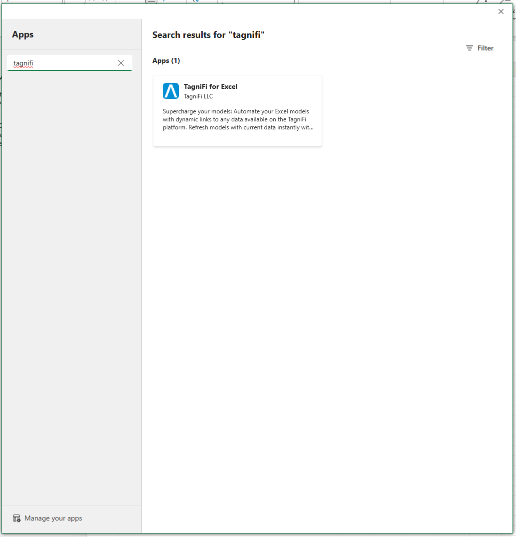 - If TagniFi for Excel is shown in the My Add-ins section, the add-in is installed, and you can proceed to other troubleshooting options. If not, see Installing the TagniFi for Excel Add-In to complete the installation.